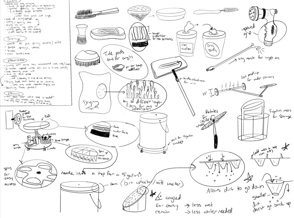 I started with a mind dump of all the different car washing products I could think of and or create.