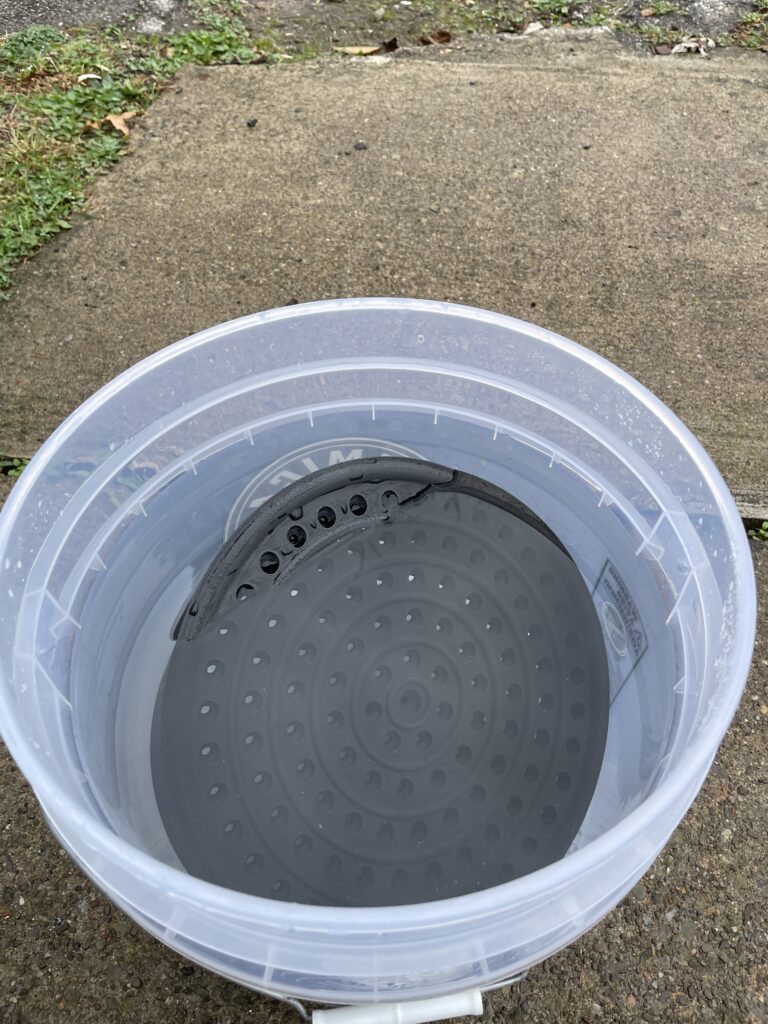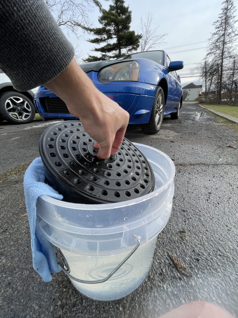 Ribbed concentric rings to agitate the washing mitt as you rinse between sections of the car.
